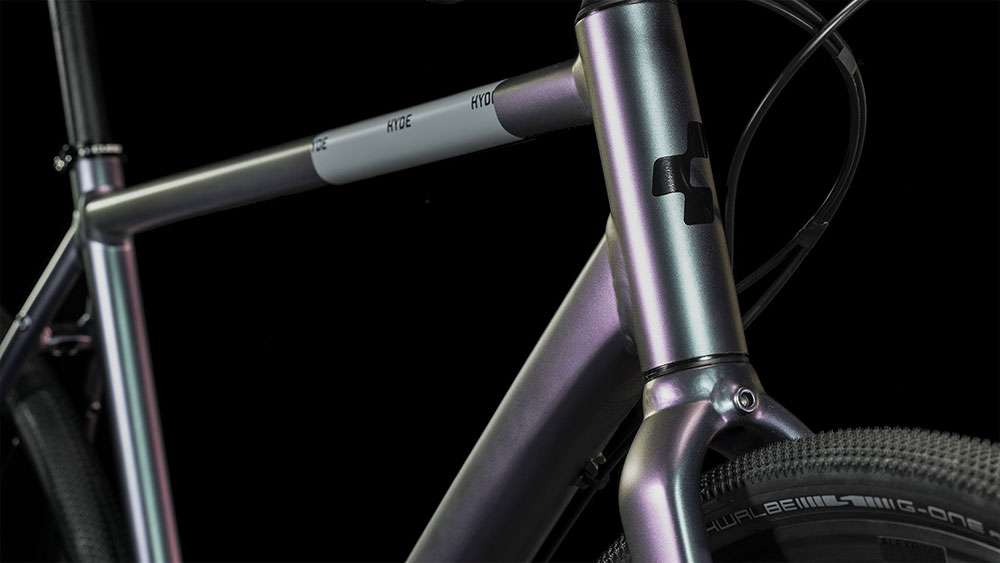 Die Fahrradkuriere der 80er und 90er waren nicht ohne Grund mit Mountainbikes in der City unterwegs, insofern hat CUBE sich bei der Entwicklung des Hyde auch an ihren 29er Hardtails orientiert. Doppelt konifizierte Aluminiumrohrsätze bilden eine stabile, haltbare, leichte und agile Rahmenstruktur, die dank nahtlos integrierter Montagepunkte die individuelle Nachrüstung mit Gepäckträger und Schutzblechen ermöglicht. Außerdem bietet sie genügend Platz für zwei Trinkflaschenhalter – vor allem auf längeren Touren ist man dadurch immer optimal mit Flüssigkeit versorgt. Schließlich komplettiert eine schlanke, steife Gabel den Rahmen, ihr Spezialgebiet: ein knackiges, präzises Lenkverhalten in Kombination mit wenig Gewicht und einem eleganten Look.