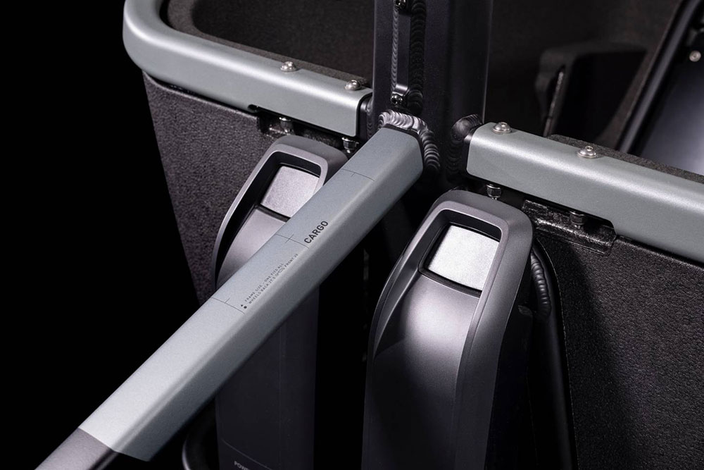 Die meisten Bikes sind darauf ausgelegt, dich und vielleicht ein bisschen Gepäck von A nach B zu bringen. Der Cargo Hybrid Rahmen kann allerdings viel mehr – nämlich den sicheren und komfortablen Transport von weitaus größerer und schwererer Last bis insgesamt 220 kg. Im optionalen Kindersitz fahren sogar bis zu zwei Kinder mit. Zugleich legt das Chassis selbst bei voller Beladung ein stabiles, unkompliziertes Handling an den Tag, das seine Qualitäten vor allem im Stadtverkehr voll ausspielt. Der kraftvolle, Lasten-spezifische Bosch Motor wurde unauffällig unten am Sattelrohr positioniert und es gibt Platz für bis zu zwei Akkus, die sich in der Nähe des Rahmenschwerpunkts befinden.